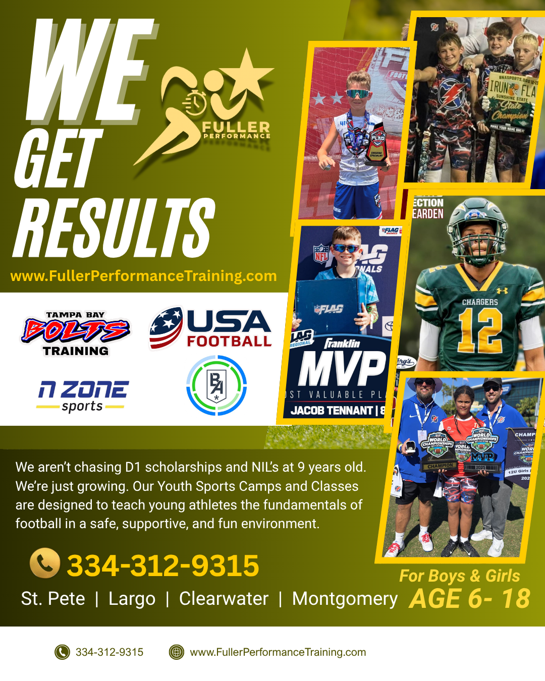 To that end we offer private sessions, group trainings, clinics, camps, and access to league play across a myriad of sports including Football, Flag Football, Basketball, Track & Field, Raquet Sports, Combat Sports, Cheer, and much, much more to come!!